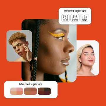 स्किन टोन रेंज और बालों के प्रकार के अनुसार अपने खोज परिणामों को अनुकूलित करें, ताकि आप देख सकें कि वह लिपस्टिक या टोपी आप पर कैसी लगेगी।